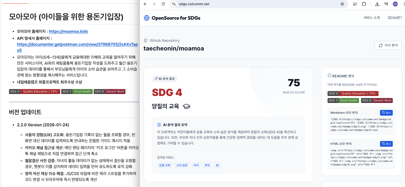 README 기반으로 어떤 SDGs가 매칭되는지 바로 확인할 수 있습니다.