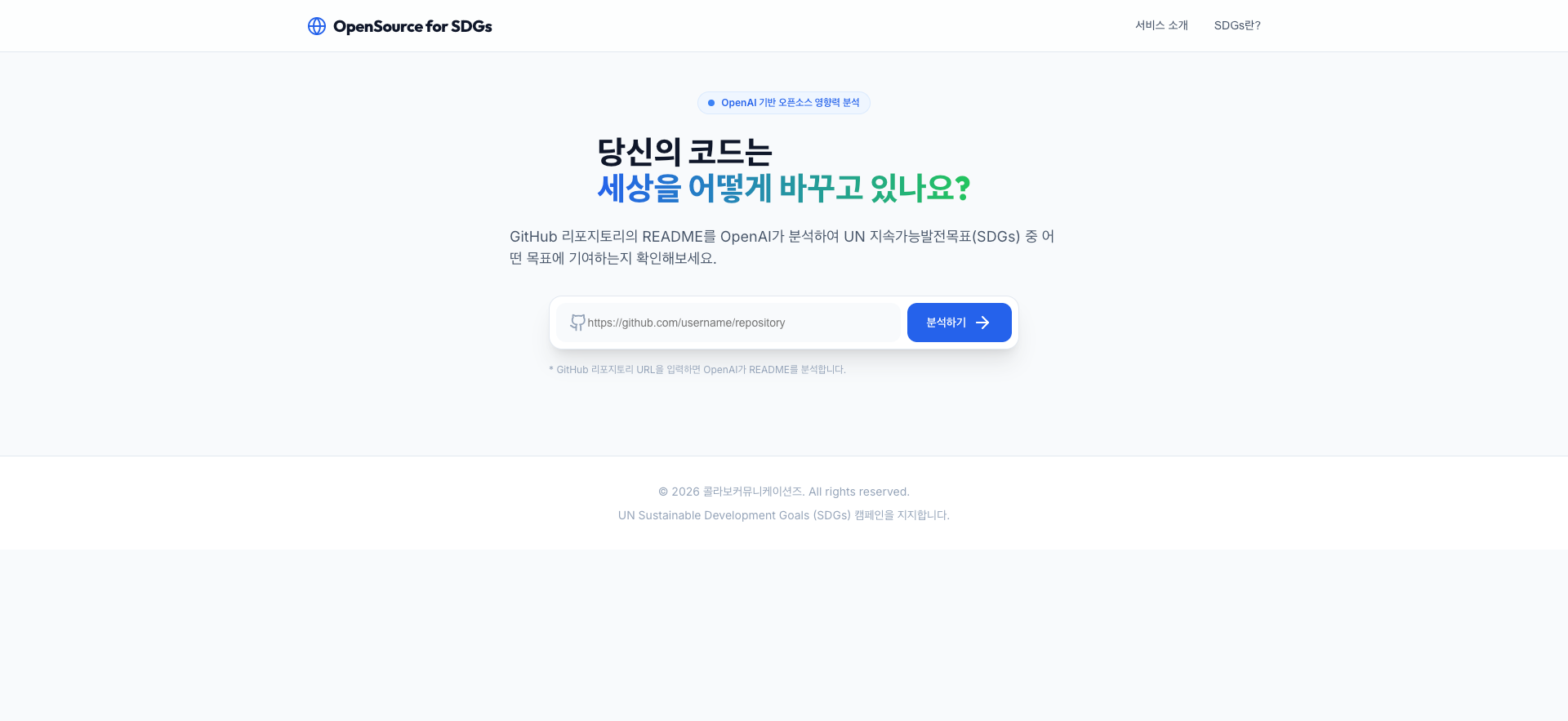 GitHub README를 AI(OpenAI 기반)로 분석해 UN의 17개 SDGs 중 어떤 목표와 연관되는지 자동으로 매칭해주는 서비스입니다.